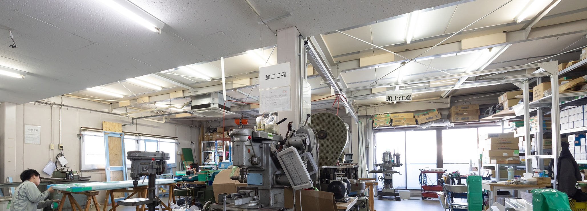 平井サッシ工業では、設計から製作までを一貫して行うため、各工程に対応した設備を自社で整えています。