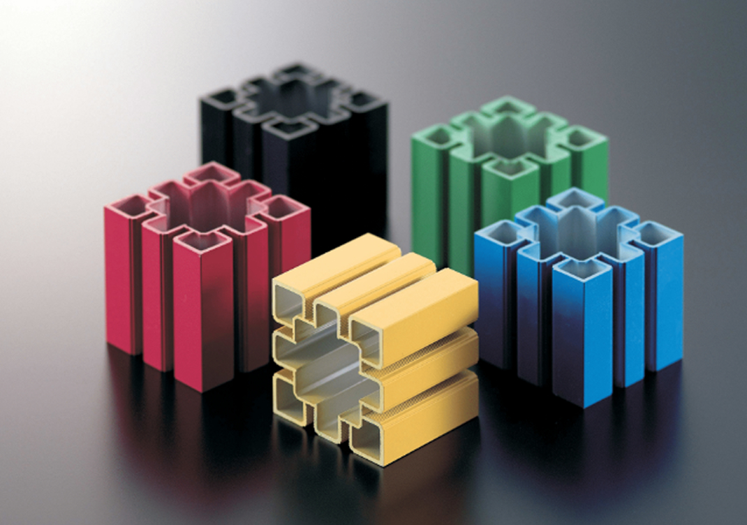 プラズマテレビの製造工程におけるクリーンブースの構築を任された際、より軽量で高強度、組立てやすく再利用可能な構造を実現するために、平井サッシ工業が独自に開発したのが、このアルミフレームシステムです。